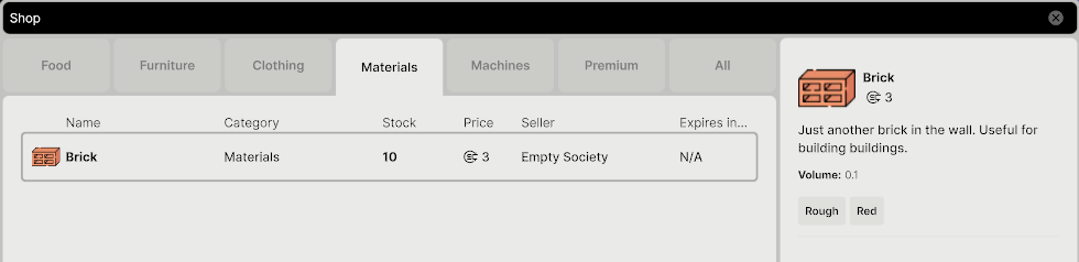 The shop will start empty but you can create sell orders to populate the store.
