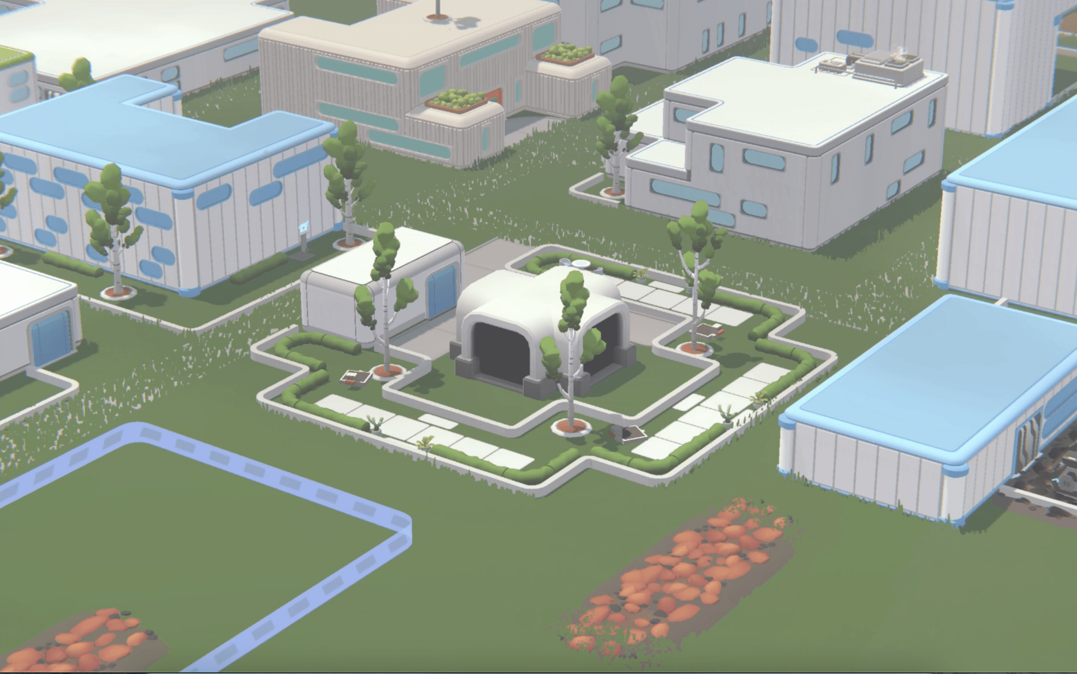 At the start of a new society, the Campus is small. Expand by adding rooms based on your group size, using Bricks from the Container—but use them wisely! You'll need resources for other structures. Focus on creating enough space for essential furniture.