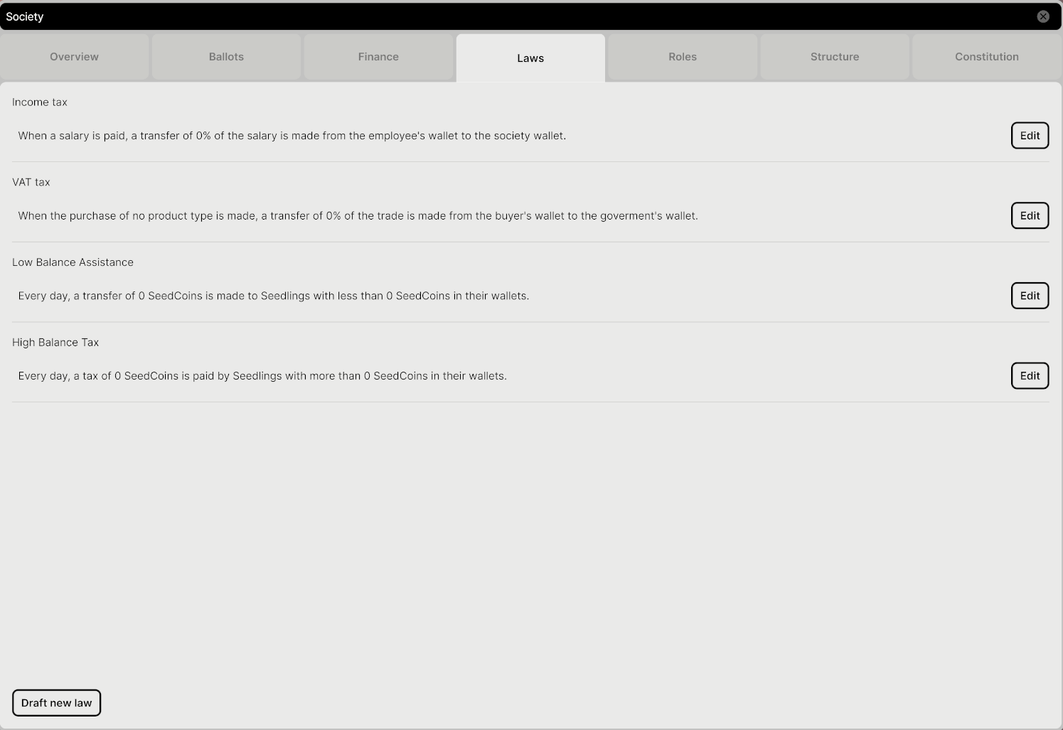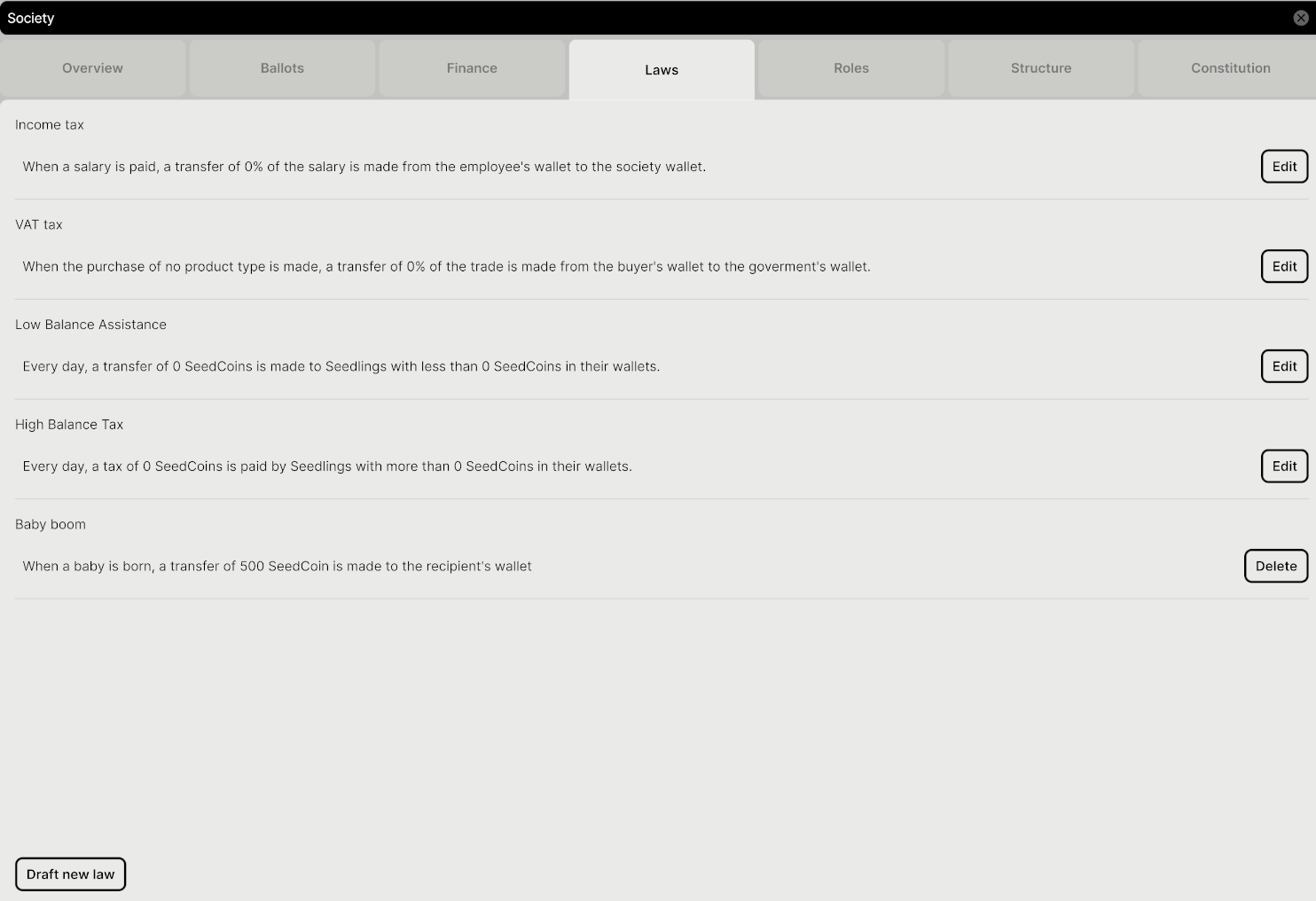 If the policy passes, it’s added to your society’s active laws. You can delete it later from the same list—just start a new vote to remove it.